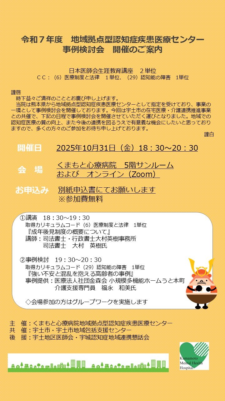 令和7年度 くまもと心療病院 地域拠点型認知症疾患医療センター 事例検討会開催のご案内